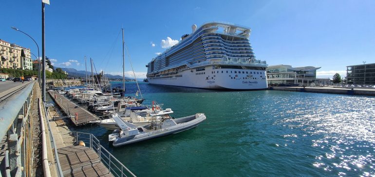 Es increíble que el Costa Smeralda pueda atracar en este pequeño puerto en el mismo centro de la ciudad.