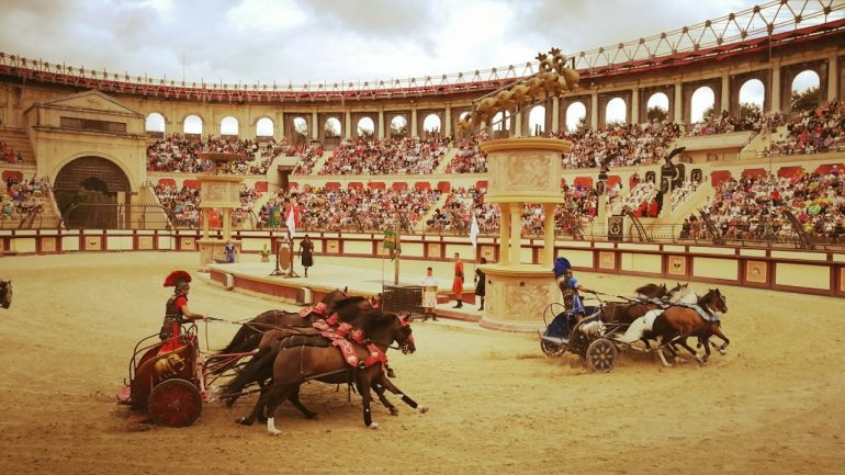 El desafío entre Galos y Romanos en los juegos del circo: peleas, fieras, gladiadores, carreras de cuádrigas. Es tan real que casi te lo crees…